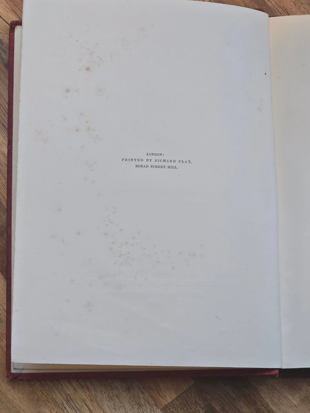 This early Victorian decorative edition showcases an ornate embossed maroon cloth binding with a central gilt title panel. The book retains a period ownership inscription dated 1868 (“Julia M. DuReis”) on the front endpaper, adding to its provenance. Printed by Richard Clay, Bread Street Hill, London.