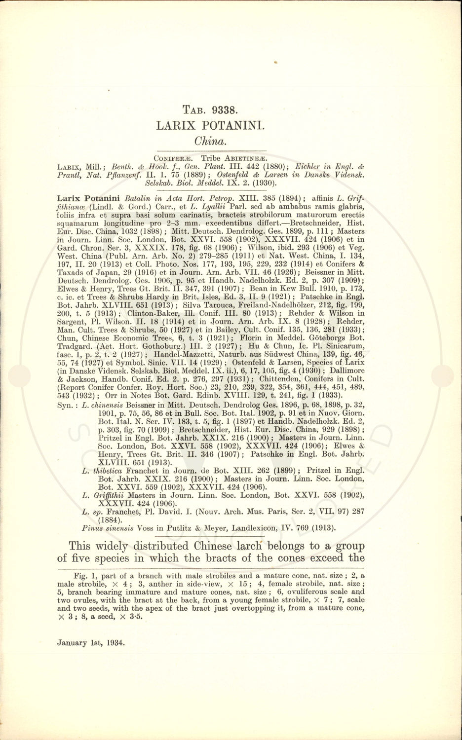Family: CONIFERAE • Tribe: ABIETINEAE • Native Region: China • Publication Date: January 1st, 1934