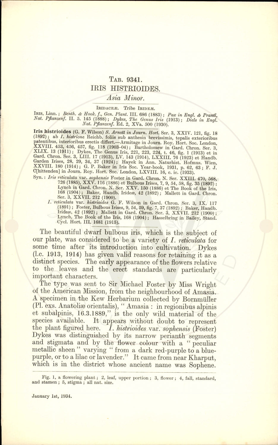 Family: IRIDACEAE • Tribe: IRIDEAE • Native Region: Asia Minor • Publication Date: January 1st, 1934