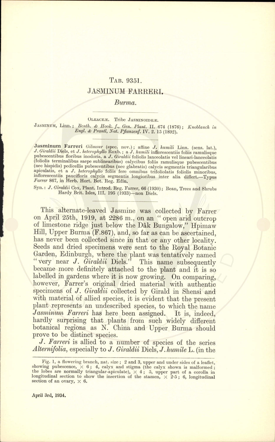 Family: OLEACEAE • Tribe: JASMINOIDEAE • Native Region: Burma • Publication Date: April 3rd, 1934
