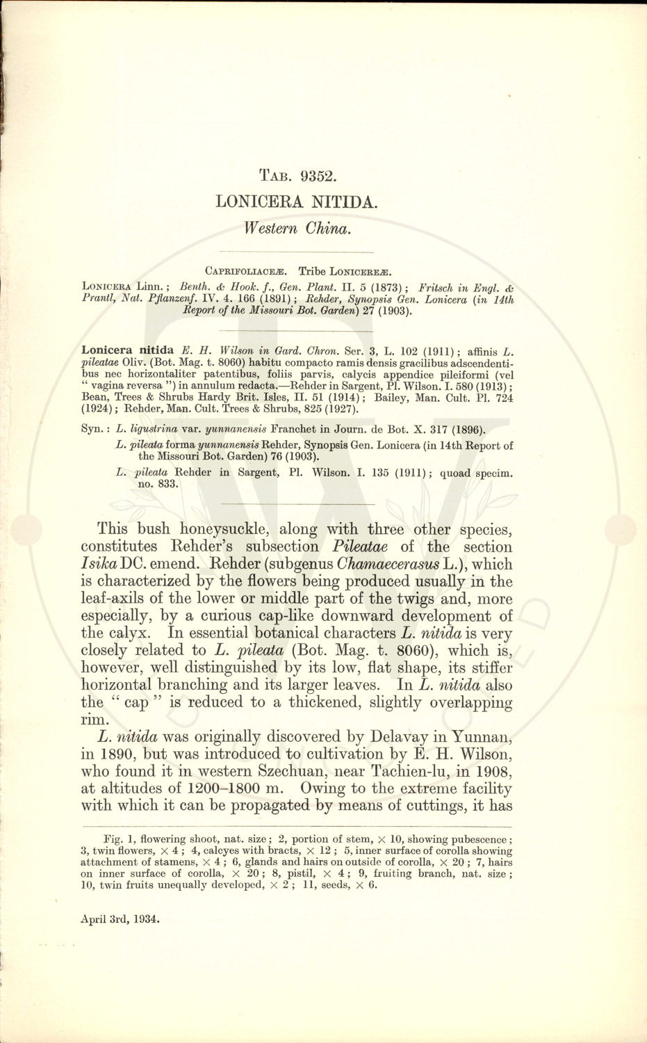 Family: CAPRIFOLIACEAE • Tribe: LONICEREAE • Native Region: Western China • Publication Date: April 3rd, 1934