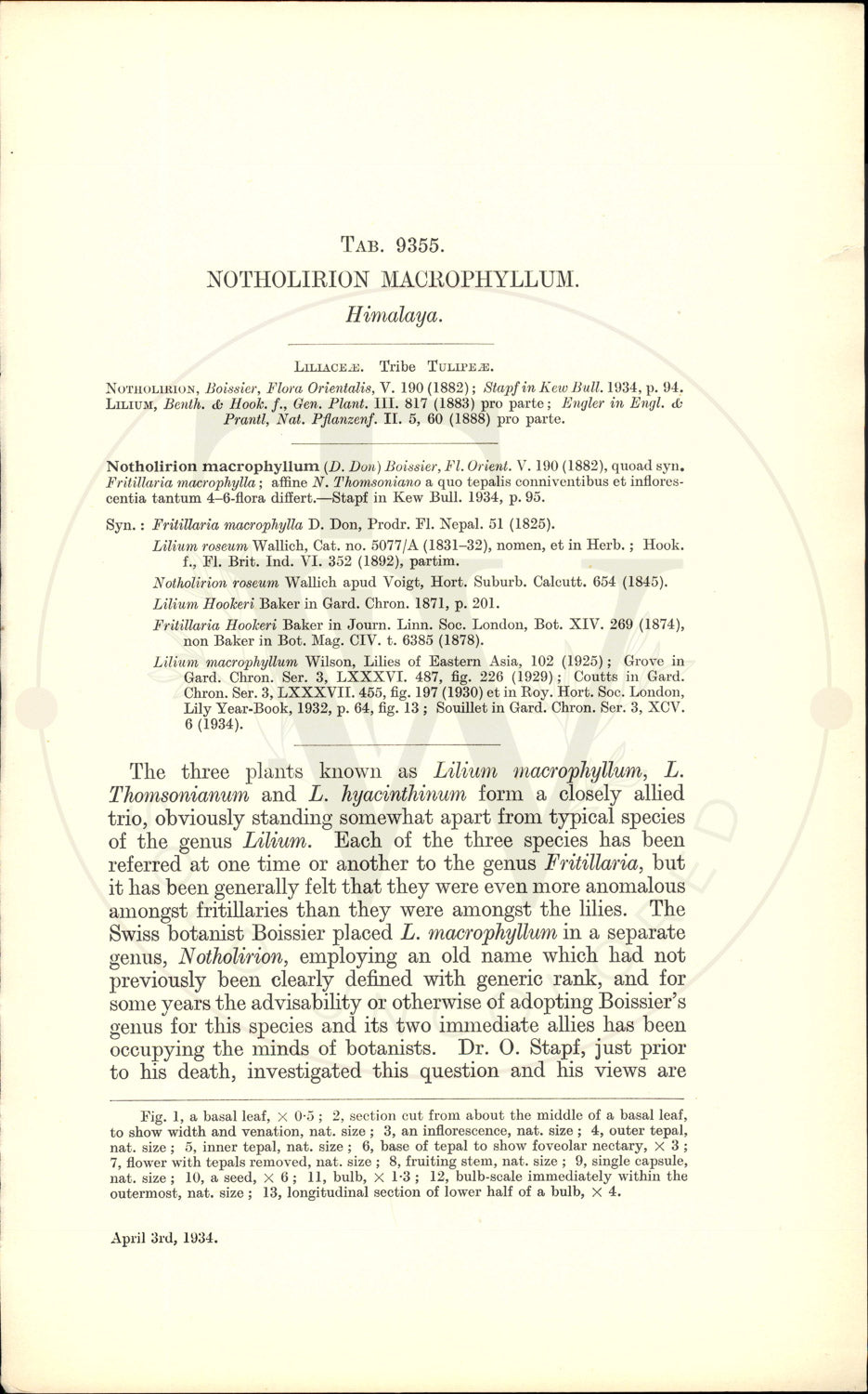 Family: LILIACEAE • Tribe: TULIPEAE • Native Region: Himalaya • Publication Date: April 3rd, 1934