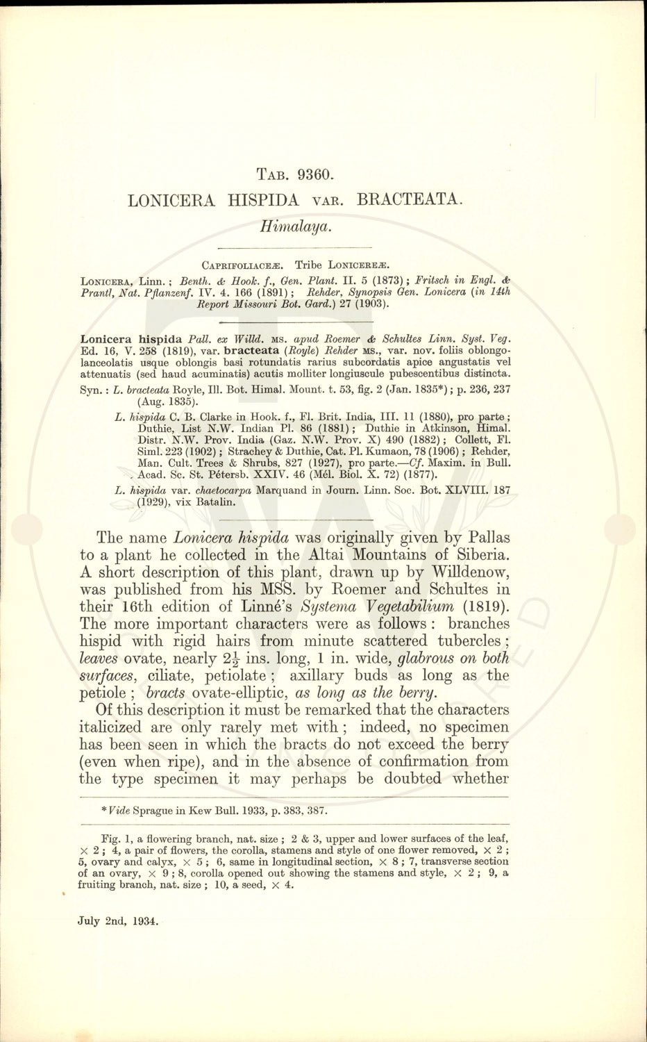 Family: CAPRIFOLIACEAE • Tribe: LONICEREAE • Native Region: Himalaya • Publication Date: July 2nd, 1934