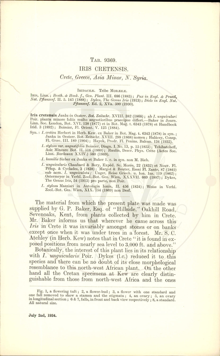 Family: IRIDACEAE • Tribe: MORAEEAE • Native Region: Crete, Greece, Asia Minor, N. Syria • Publication Date: July 2nd, 1934