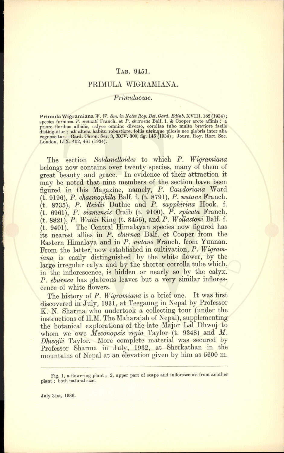 Original black and white uncolored botanical print from Curtis's Botanical Magazine (established 1787). This 9000s series print is from unissued publisher stock, never hand-colored, representing the authentic plate as it appeared in the magazine. Edited by Sir Arthur William Hill for The Royal Horticultural Society, London.