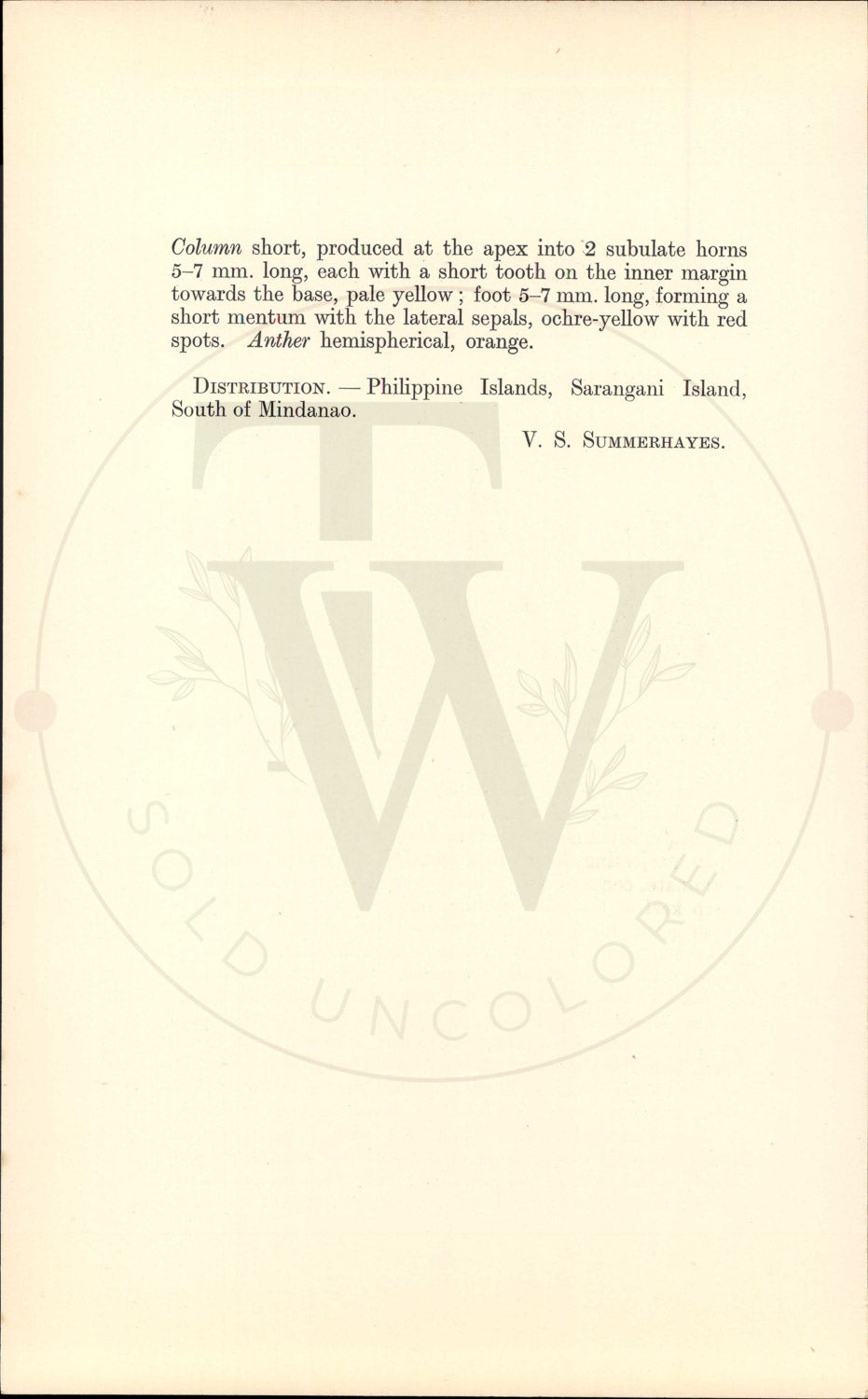 Distribution: South of Mindanao • Tab Author: V. S. SUMMERHAYES