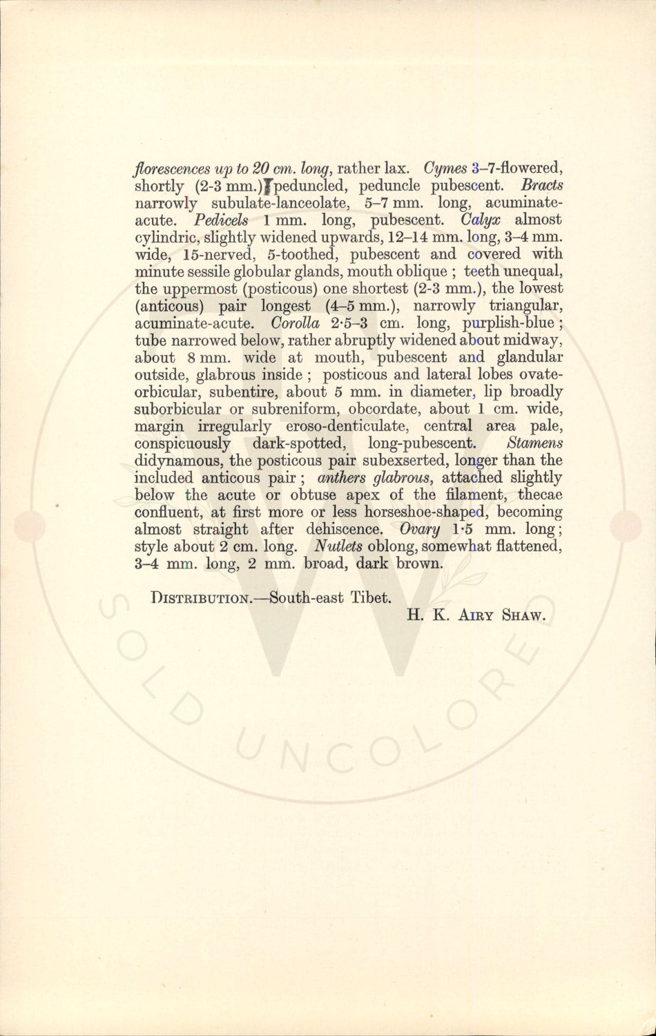 Distribution: -South-east Tibet • Tab Author: H. K. AIRY SHAW
