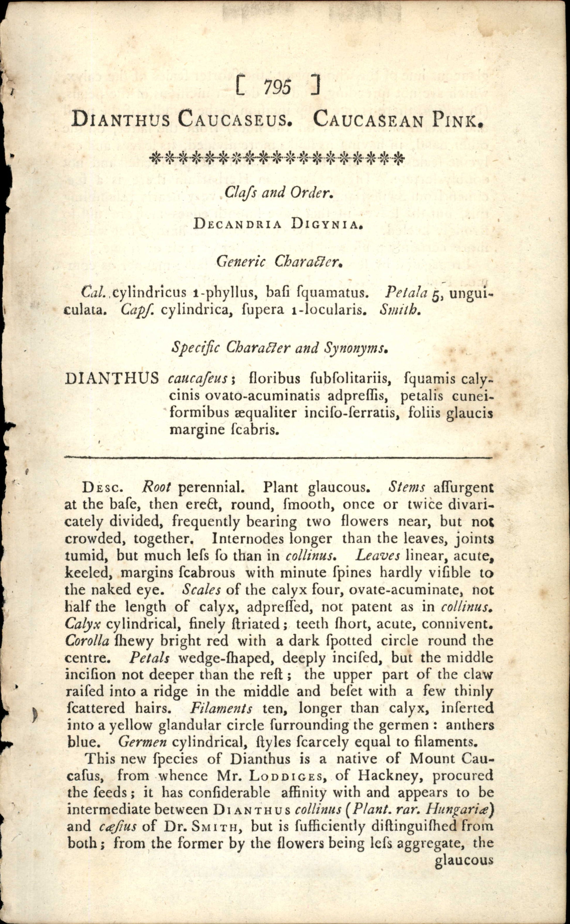 [ 795 ] DIANTHUS CAUCASEUS. ******** CAUCASEAN PINK. ****** Class and Order.