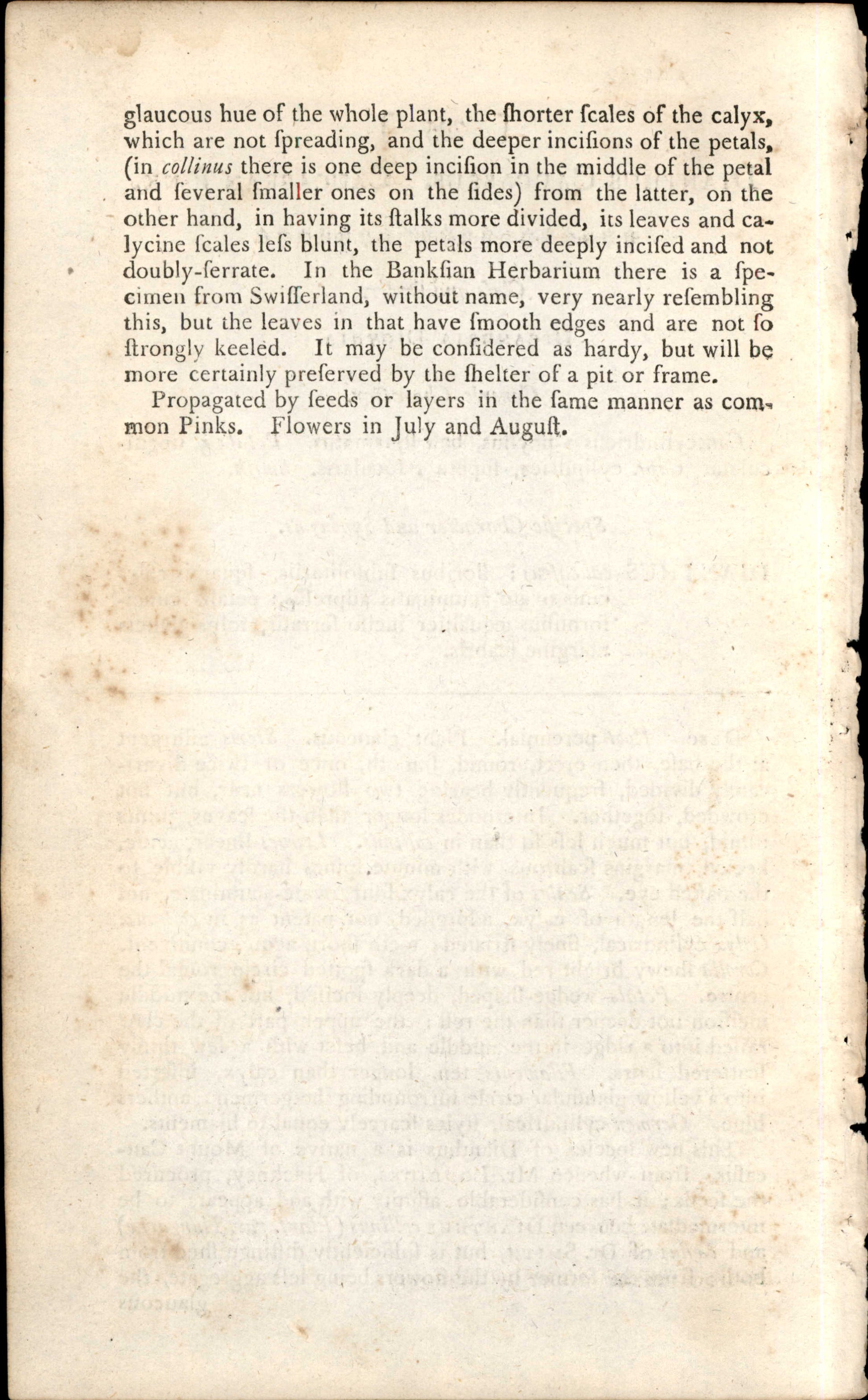 LODDIGES, of Hackney, procured the seeds; it has considerable affinity with and appears to be intermediate between DIANTHUS collinus (Plant. rar.