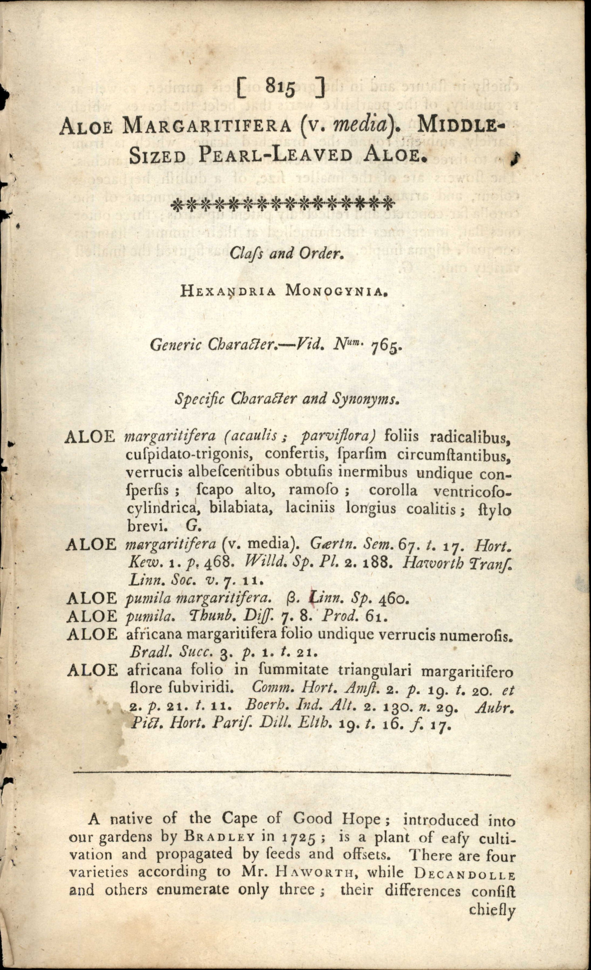 MIDDLE- SIZED PEARL-LEAVED ALOE. ****** 315 21 Class and Order.